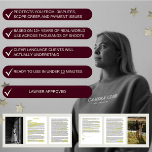 The information, templates, and guides provided by Emma Stewart Photo are for educational and informational purposes only. We are not a law firm, and nothing on this website or in our products should be taken as legal, tax, or financial advice. Use of our products does not create an attorney–client relationship.